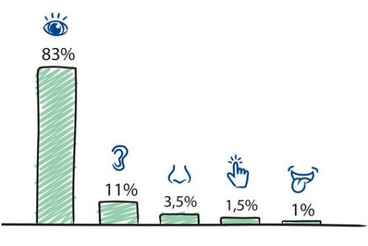 A világunk vizuális, az agyunk által feldolgozott érzékszervi benyomások 83%-át a szemünk érzékeli. Ezért fontos a kommunikációnkat színesebbé, látványosabbá tenni, hiszen legtöbbünknek valóban látni kell valamit, mielőtt megértenénk és emlékeznénk rá.
