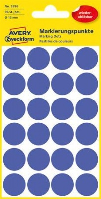 Etikett, 18 mm, kör, eltávolítható, AVERY ZWECKFORM, indigókék, 96 etikett/csomag