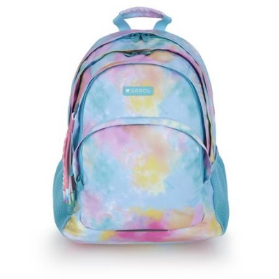 Hátizsák, iskolatáska, cipzáras, GABOL "Mystic", világoskék, batikolt hatású
