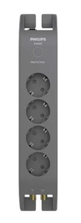 Elosztósor, 4 csatlakozóaljzat, túlfeszültség-védelemmel, 2 m kábel, PHILIPS, sötétszürke